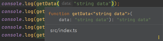 ⇒ getData(”string data”)라고만 해줘도 타입 추론이 되지만, 이 때는 “string data”라는, 내가 준 값이 캡쳐가 되어서 이 리터럴이 T의 타입으로 정해지게 된다.