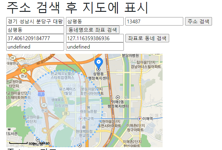 // 주소로 검색해 kakao map 좌표 객체를 얻고