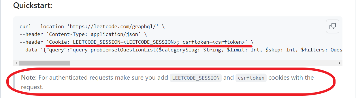 EETCODE_SESSION와csrftoken쿠키를 언급하고 있는 걸로 보아 로그인을 하는 것은 확실해보이나, 내가 GraphQL 쿼리를 잘 모르고 샘플 결과에서 submissions 항목도 특별히 보이진 않아서 패스했다.