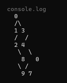 /** * Definition for a binary tree node. */ class TreeNode { val: number left: TreeNode | null right: TreeNode | null constructor(val?: number, left?: TreeNode | null, right?: TreeNode | null) { this.val = (val===undefined ? 0 : val) this.left = (left===undefined ? null : left) this.right = (right===undefined ? null : right) } printTreeLevels(node: TreeNode | null = this): string[] { const result: string[] = []; if (node === null) { return result; } // [각 노드, 노드가 위치한 레벨, 각 노드의 부모 노드] const queue: Array<[TreeNode, number, TreeNode]> = [[node, 0, null]]; let currentLevel = 0; let currentLevelString = ''; let connectorLine = ''; while (queue.length > 0) { const [currentNode, level, parentNode] = queue.shift()!; // '!': non-null assertion operator. TypeScript에게 해당 값이 항상 존재한다고 알려줌. shift()의 결과가 undefined이더라도 TypeScript의 strict 모드 경고를 발생시키지 않도록 한다. // '지금' 레벨에서 출력해야 하는(=같은 레벨의) 노드가 아니면, result 배열에 현재까지 만든 string을 넣고 string을 초기화한다. if (level !== currentLevel) { result.push(currentLevelString); result.push(connectorLine); currentLevelString = ''; connectorLine = ''; currentLevel = level; } // 현재 레벨의 자식 레벨에 이어지는 '연결 라인' 생성 // ex) connectorLine = '/\ /\ /\ /\' let connector = ''; if (currentNode.left) { connector += `/`; if (currentNode.right) { connector += '\\ '; } else connector += ' '; } else if (currentNode.right) { connector += ' \\ '; } else connector = ' '; connectorLine += connector; // 현재 레벨의 노드를 나열한 '노드 라인' 생성 // ex) currentLevelString = '8 9 10 11 12 13 14 15' if (!parentNode) currentLevelString += `${currentNode.val}`; else if (currentNode && currentNode === parentNode.left) { // 현재 노드가 '왼 자식' currentLevelString += `${currentNode.val} `; } else if (currentNode) { // 현재 노드가 '오른 자식' if (!parentNode.left) { currentLevelString += ` `; } currentLevelString += `${currentNode.val} `; } else { // 현재 노드가 null인 가상의 자식. 근데 적용이 안 되는 것 같다. currentLevelString += ' '; } // 현재 노드에 왼쪽 자식 노드가 있으면 queue(의 끝)에 추가 if (currentNode.left) { queue.push([currentNode.left, level + 1, currentNode]); } // 현재 노드에 오른쪽 자식 노드가 있으면 queue에 추가 if (currentNode.right) { queue.push([currentNode.right, level + 1, currentNode]); } } // 마지막 노드 처리: 현재까지 만들고 있는 string이 빈 문자열 ''이 아니라면 마지막으로 result 배열에 추가해줌. if (currentLevelString) { result.push(currentLevelString); result.push(connectorLine); } return result; } } // 호출: let root = new TreeNode(1); console.log(root.printTreeLevels().join('\n');