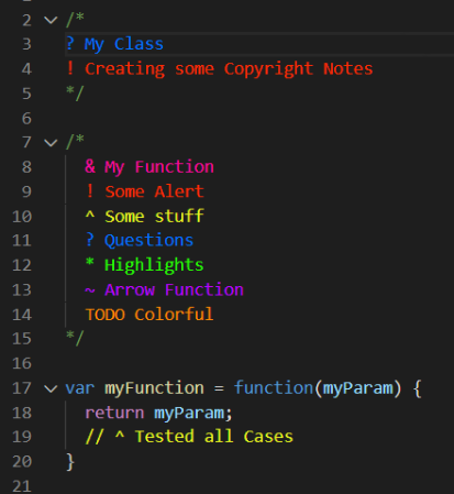 ?내지는!등의 특수문자를 덧붙여서 에디터에서 보는 색깔을 달리 지정할 수 있게 되었다. 더 유명한 플러그인인 Better Comments보다 덧붙일 수 있는 특수문자가 더 많아 더 다양한 색깔을 손쉽게 입힐 수 있다는 점이 장점이다.