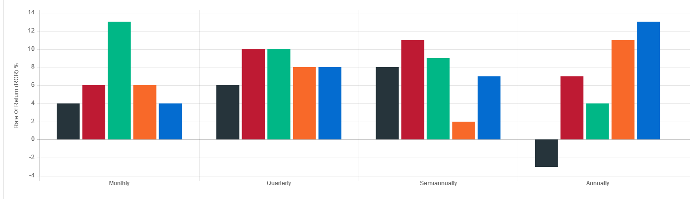- Chart.js를 이용해 내가 제출한 해답별로 그룹 짓은 bar chart로 만들려고 한다. 이런 식으로: