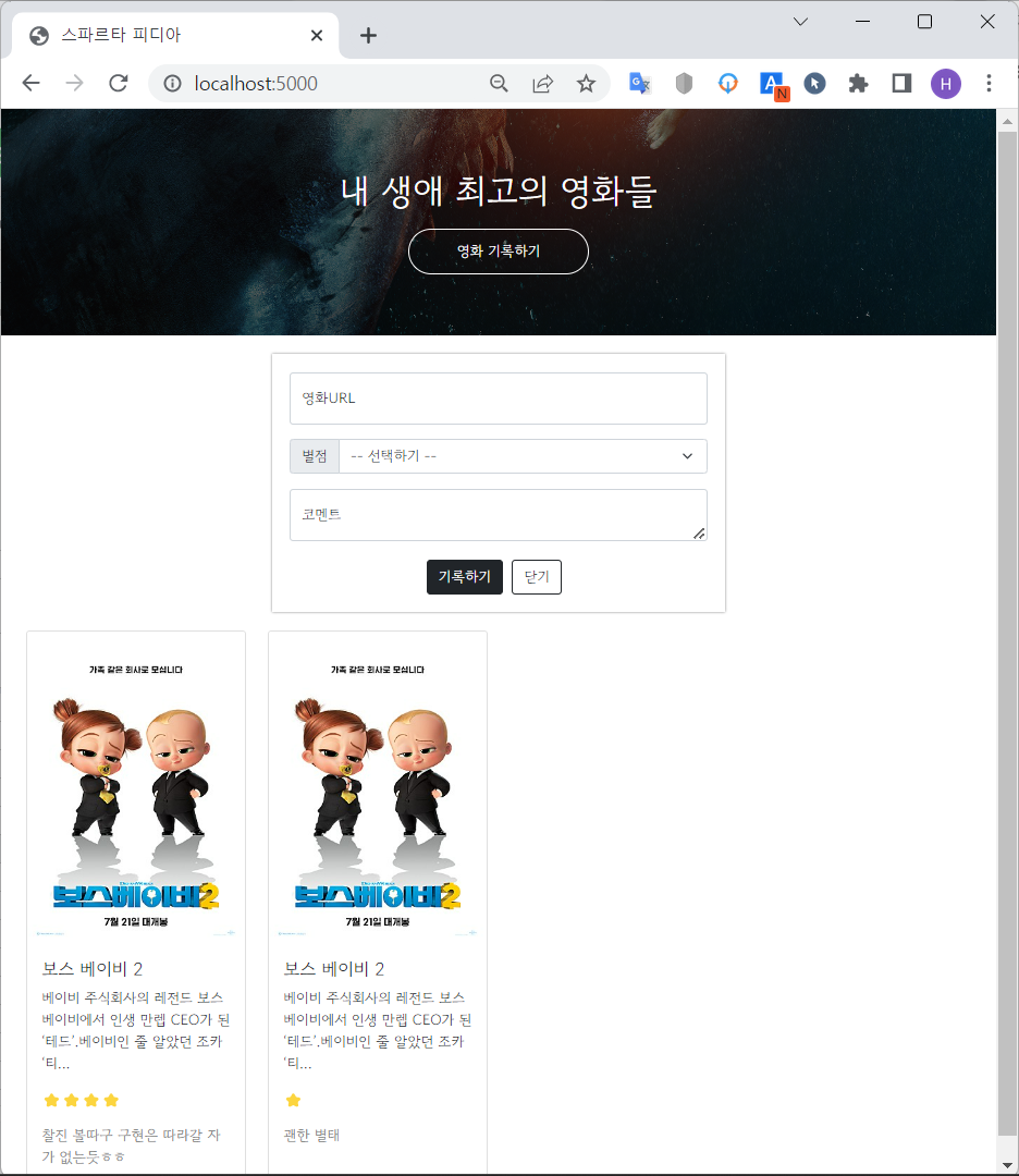 localhost:5000과localhost:5000/mypage로 접근할 수 있다. (= 로컬 개발환경)