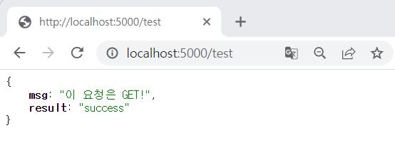 return jsonify({'result':'success', 'msg': '이 요청은 GET!'})