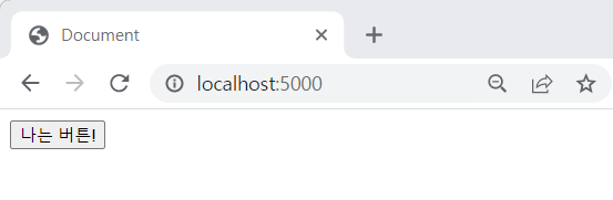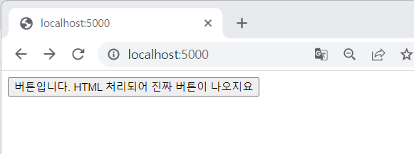 return '<button>버튼입니다. HTML 처리되어 진짜 버튼이 나오지요</button>'이렇게 해주면 localhost:5000페이지에서 이렇게 뜨게 된다: