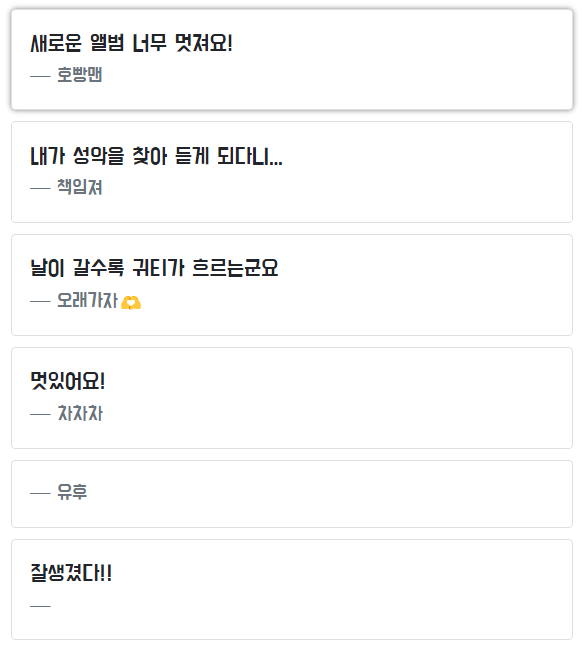 <footer class="blockquote-footer">오래가자🫶</footer>