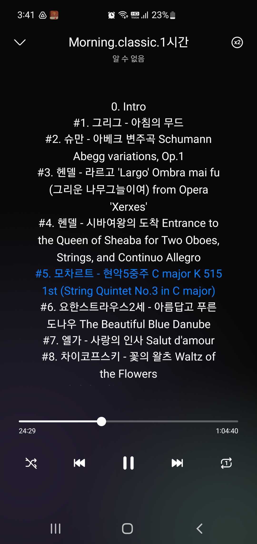 [00:00.00]0. Intro [00:10.00]#1. 그리그 - 아침의 무드 … [00:14]#2. ⇒ X